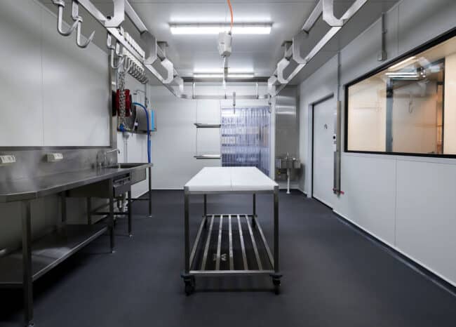 Kilcoy Global Foods is a renowned brand which sustainably sources, produces and distributes beef products throughout Australia, America and China; this well-known brand was originally established in Kilcoy, Queensland. Throughout the start of 2021, we began meeting with the experts from Amicus Interiors to discuss Kilcoy Global Foods’ new venture to create various exhibition and kitchen showroom spaces within their new office fit-out located in the heart of the stunning Sunshine Coast. We were approached by the Client to design and fabricate a completely custom cooking suite for their new exhibition kitchen – Being only our second cooking suite that we had manufactured to date, we were incredibly excited that we could collaborate with this brand to incorporate our fabrication and design experience with their original vision to create a truly exceptional exhibition space. Along with the custom cooking suite, we also fabricated and fit-out the entirety of the kitchen and preparation areas – Including the showroom kitchen and bar, the laboratory and packaging cool-rooms, the scullery and preparation rooms, as well as the coolrooms and freezers, while also incorporating a bespoke meat ageing display fridge with a custom salt wall. Overall, this project has been incredibly rewarding for our brand, as we continue to develop and refine our endeavors in creating Australia’s most ergonomic and luxurious custom cooking suites.