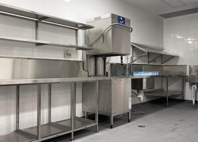 Following the successful completion of the Ground Level Kitchen at QT Hotel early on in 2022, T&H were engaged to lead a second design and construct project throughout the Level 2 Function Kitchen. Throughout the design stage, our kitchen consultant put forward an open plan style concept which would ensure user efficiency even in the most high-demand situations. Custom stainless steel products included ice wells, shelving, benching, sinks and knee operated hand basins, which created a seamless finish throughout. With generous space and ample storage available, there was an aspect of creative freedom on this project, inspiring our designers to take advantage of this by incorporating fully encompassing commercial equipment. The new spacious layout which we designed was transformed with the installation of a Hobart glasswasher line-up with reverse osmosis capabilities for polish-free wares, a reliable Scotsman ice machine, Cambro hotboxes for food storage, as well as Cyberchill refrigeration solutions with both under-counter and upright options included. Throughout the various evolving stages of the project, T&H were trusted by the client to design a unique and specialised space, as well as install both custom stainless steel products and specified food-service products so as to bring the project vision to life.