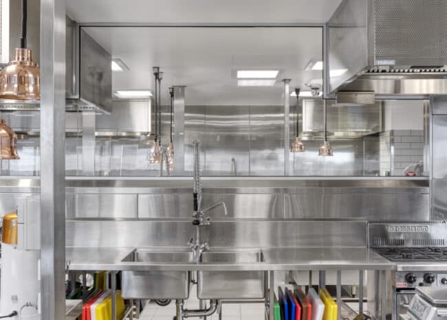 TAFE Queensland’s latest vocational training institute is located at Robina on the Gold Coast, and features a multi-faceted hospitality education hub – This project has been one of our largest hospitality fit-outs to date, and consisted of producing a Café, an alfresco rooftop Bar, a Conference and Banquet Kitchen, as well as multiple Training and Demonstration Kitchens. For this project, we worked in collaboration with the team at SHAPE and the designers from AEQ Architects and FSDA to deliver these commercial food-service spaces for Robina TAFE. This new hands-on learning facility is decked out with a completely sustainable vocational training space, which includes only high-tech and eco-friendly equipment that can keep up with the students, TAFE Queensland noting “sustainability has been considered in all building design and fit-out decisions”. The training kitchens feature an ergonomic design, which captures the functions and the requirements of the students who will be the primary users occupying the space – Key features include the incorporation of a dedicated cooking demonstration lecture theatre, the inclusion of more than half a dozen Rational combi ovens, as well as an open-plan cooking line and preparation layout, which can cater to a few dozen students at a time. The various kitchen, café and bar spaces throughout this project are complete with innovative and top-of-the-line commercial food service equipment from an array of suppliers such as Comcater, Williams Refrigeration, Moffat, MEIKO, Middleby, FSM, as well as a number other renowned suppliers.